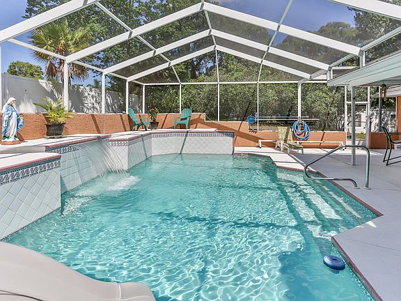 NEW PRICE! GORGEOUS, UPGRADED, 4 BEDROOM HOME ON 1/3 ACRE WITH UNBELIEVABLE POOL AND OUTDOOR SPACE! This one is special and won't last long! This split floor plan combines the family room and kitchen which overlook the pool area providing the perfect space for entertaining or spending quality time with family! Family room boasts a huge stone wood burning fire place and the kitchen features real wood cabinets, granite counter tops, granite back splash, and breakfast bar! Master Bed/Bathroom provides access to the pool and is equipped with a walk-in closet, large vanity topped with granite, and a walk-in shower! The pool space out back in unbelievable! The pool features a waterfall, pool slide, Jacuzzi seat, huge covered seating area, child safety gate, and a solar powered heater! There is a large shed on the property along with a second storage area! The inside laundry room is huge and is also equipped with a work bench! All of this sits on a 1/3 acre lot with beautiful mature Oak trees in the wonderful community of Spring Hill! Schedule your showing today... This one will not last!