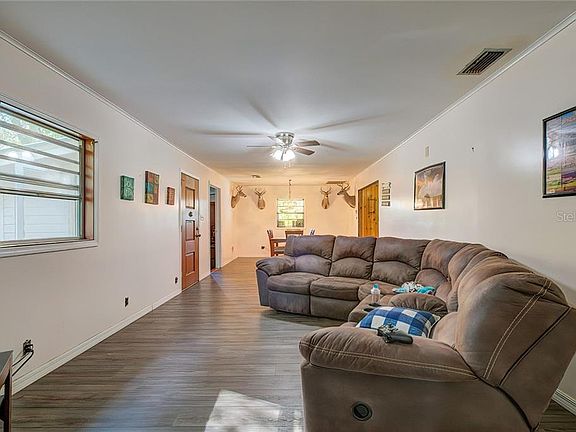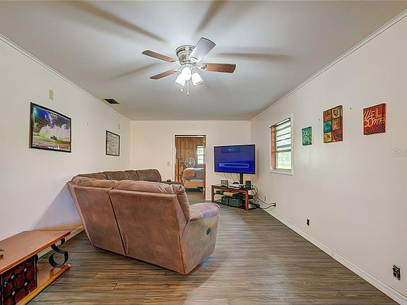 Need Acreage? Peaceful and Tranquil help describe this 3 BR, 2 bath home located on 5.5 acres. With plenty of privacy, this home features almost 2000 SF of living space, and an open floor plan with living room / dining room combo - great for entertaining. The bright kitchen has tons of storage space, wood cabinets, and stainless steel appliances. The bedrooms are spacious, and there is wood-look flooring throughout - no carpet. Outbuildings on the property for storage. Mature trees and beautiful views. Bring your chickens, horses, goats, etc! No HOA or CDD fees. Schedule your showing today.