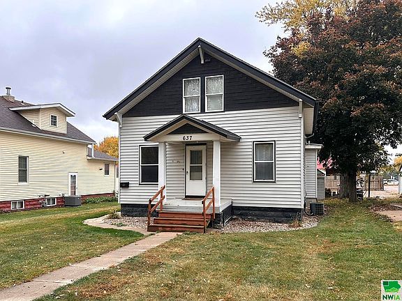 Charming 1 1/2 story home offering functional living and convenient location! Situated close to Dordt University and within steps of downtown, this property features established lawn and trees, over 1,100 square feet of cozy living, and single stall detached garage with additional parking pad! The main floor offers large living room with charming wood beams, kitchen with dining space, primary bedroom, full bath, along with a large laundry + 3/4 bath and back entry! The upstairs offers 2 spacious bedrooms with wood floors. The partial basement is unfinished, but offers ample storage space and mechanical. All appliances included and move in ready!