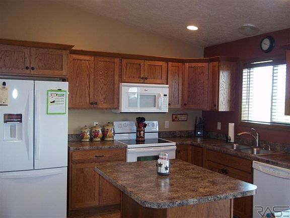 "Life's a Little Bigger in a Small Town" Enjoy the Turner county seat of Parker, SD! A fantastic split foyer on a large, fenced in lot with 3 sizable bedrooms and 2 spacious, full bathrooms! This home has room to spread out in the inviting living room complete with a bayed area and vaulted ceilings. The generous kitchen has ample storage in solid custom oak cabinets with island seating and room for dining! The lower level is warm and room with an oversized L-shaped family room plus HUGE third bedroom! Great storage under the stairs and in the utility room! Don't overlook the additional parking pad, newer exterior paint and fenced in yard complete with a playset and sandbox!