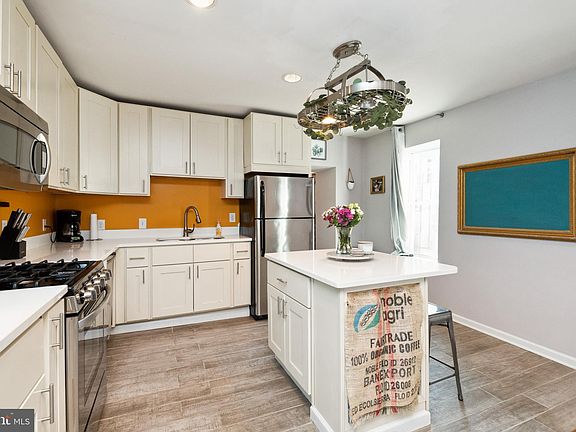 Blocks from Camden Yards, this end unit row home is situated on a one way, one lane street and has all the charm, with modern upgrades! Home was completely renovated in 2015. Living space is more than 1,100 sq ft and offers plenty of light. Open layout kitchen features quartz countertops, stainless appliances, island and gas stove. Full bath and laundry on the main floor. Electric fireplace included. Basement has plenty of storage. Location is convenient for commuting, and easy to enjoy restaurants, stadiums, Inner Harbor, parks and MORE. All information is believed to be correct. Buyer and buyer's agent to confirm all details. 100% financing program available.