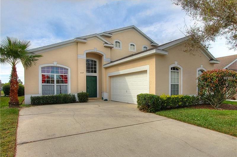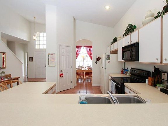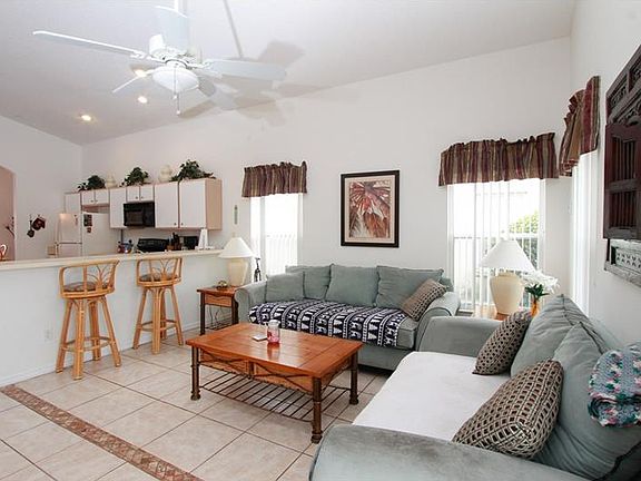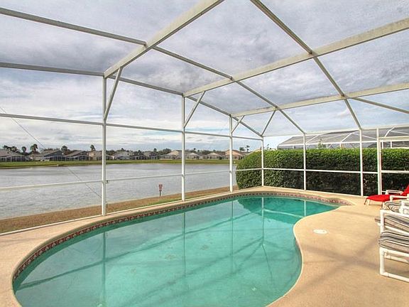 Beautifully Furnished Water Front Home with Sparkling Pool and Three Master Suites! You'll appreciate the charming kitchen that boasts plenty of counter space, convenient breakfast bar and separate dining room. Enjoy pool and pond views from the family room as well as easy access out onto the pool deck through sliding glass doors. In this home entertaining is effortless with the open-concept floor plan, generous sized rooms and practical ceramic tile throughout the foyer, kitchen, dining and family rooms. Adding to the spacious feel is the two story ceilings that are present throughout all the living areas. Delight in Florida's sunny weather either splashing in the pool or soaking up the sun on the oversized deck which has plenty of space for a grill for back yard barbecues. Back inside the home you'll appreciate the split five bedroom plan with two of the master bedrooms conveniently located downstairs while the remaining bedrooms and fourth bathroom are located upstairs. Situated in the popular Hampton Estates, which features a resort style pool and playground, along with tennis and volleyball courts, this home is minutes from majors roads, theme parks, shopping and dining. Zoned for short term renting this property makes the ideal second home or investment property. Make this your home away from home and start making memories today!