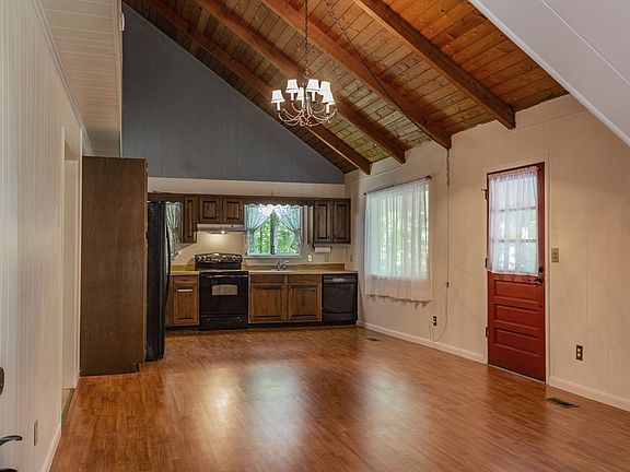 Perfect for a second home, vacation getaway, rental investment or starter home, so many possibilities are available. Nestled in the trees this 2 bedroom 2 bath sits on 2 acres with a winter view. The main level offers an open floor plan with a large Kitchen/Dining Living Room combo with a vaulted ceiling and access to a great front porch just right for that morning cup of coffee, afternoon ice tea or entertaining guests while listening to the babbling stream across the road. Two bedrooms and a full bath finish out the first floor. Upstairs you will find an open loft that could be used for an office plus another full bath and Bonus room with closet that could provide additional sleeping options. The lower level is a partial basement and could be a workshop or provide storage space. There is also a deck on this level with steps down to the yard and a fire pit. Convenient to Franklin and Highlands and the many outdoor activities that WNC has to offer. Take a look and see if this is the Mountain Cabin that you've been looking for!