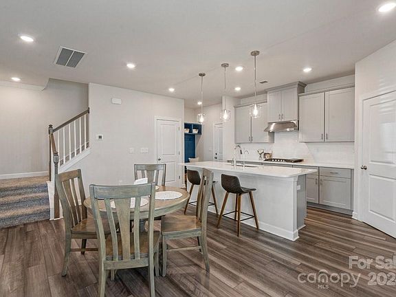 Ideal Pineville home nestled in Preston Park. Open floorplan maximizes space and breathing room in kitchen, dining & living room. Large primary suite includes walk-in closet and dual sinks. Great loft space for 2nd living room, office, playroom, etc. Slate cabinets, island kitchen, subway tile backsplash, ice white quartz countertops, cool grey EVP flooring with grey-brown carpet upstairs. Close proximity to the pool, library, Jack D Hughes Park & everything downtown Pineville has to offer! 2 car garage enters to drop zone with cubbies at back of property. Upgrades include Garage Floor Tiles, Kitchen Pendant Lights, Reverse Osmosis System in Kitchen, & Half Bath Vanity Install. Meritage energy-efficient home! All the perks of new construction without the wait!