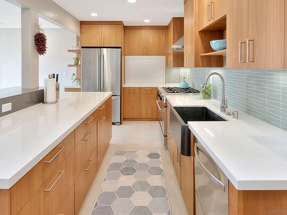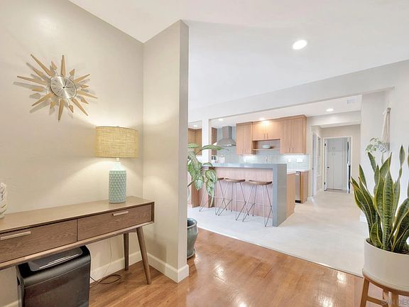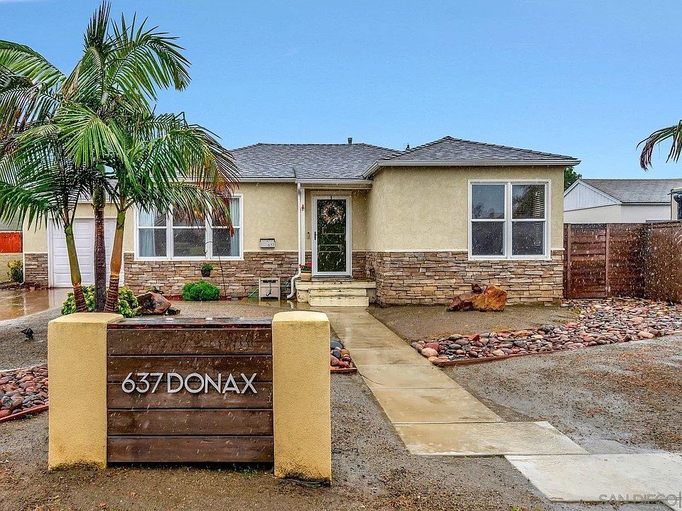 Come fall in love with this turn key home on a cul de sac in desirable Imperial Beach! Completely updated throughout while maintaining its mid century character, including original hardwood floors in much of the home. New roof 2020, new gutters 2021, new windows 2022, new HVAC (central heat and air with a mini split in the family room) 2022, custom kitchen designed by Arise interiors completed 2018 with cherry cabinetry, quartz countertops, professional range by Blue Star, wine fridge, appliance garage and more! Huge primary bedroom with ensuite bathroom. Secondary bedrooms are also good sized. You'll love to hang out and entertain in the family room with tongue and groove/open beam ceiling, custom wet bar, library nook which opens to a beautiful covered patio. Drought tolerant landscaping in both the front and back yards, raised garden bed, automatic sprinklers on a timer. 1 car attached garage with laundry hook ups (gas dryer). Large shed in side yard for additional storage. Walking distance to elementary and high school, great restaurants on Seacoast, and easy access to the Bayshore Bikeway.
