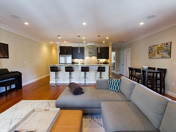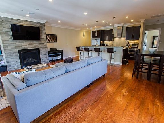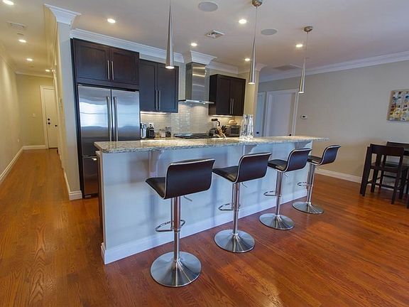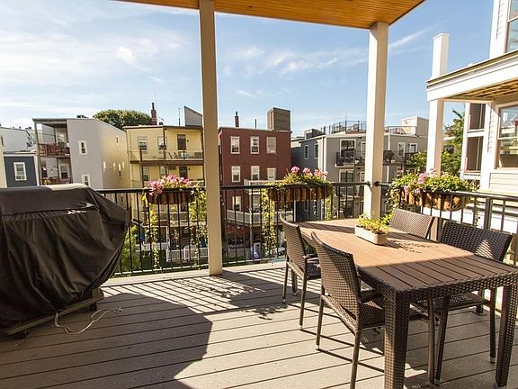Walk from the Seaport right into your dream home! Spectacular 2 bed/2 bath has everything you could want. This unit boasts hardwood floors, expansive open layout living/kitchen/dining area, as well as a gas fireplace framed with beautiful marble and slate accent wall. Professional Jenn-Air appliances, 6-burner touchscreen oven, built in drawer microwave and a dual zone wine fridge! Large granite island is perfect for entertaining with customized piano glass backsplash. Russound speakers are throughout with bluetooth receiver and iphone docking station built in. Master bath offers marble double sink, enormous master shower with river rock base and glass tile accents. Custom walk in closets in both bedrooms. Large private deck is equipped with natural gas line for a grill, lighting and electric outlets. Extra wide heated garage parking spot with elevator access to unit and color video intercom system. Square footage does not include private extra large storage closet on the same floor.