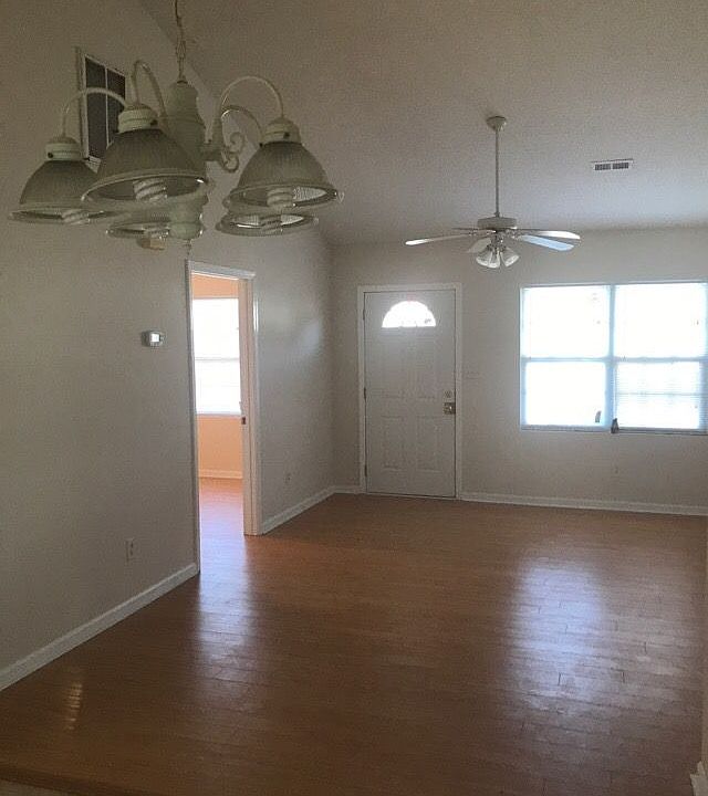 Cute house on corner lot.Large open living area with ceiling fan Wood flooring throughout for easy care. Master Bedroom separated from other two bedrooms by the living room. Master bedroom has private bath and ceiling fan. Galley kitchen with all appliances and eat in nook. Laundry closet in kitchen galley with washer and dryer hook-ups. Located off N Tryon St. Easy access to interstate and light rail. Section 8 o.k