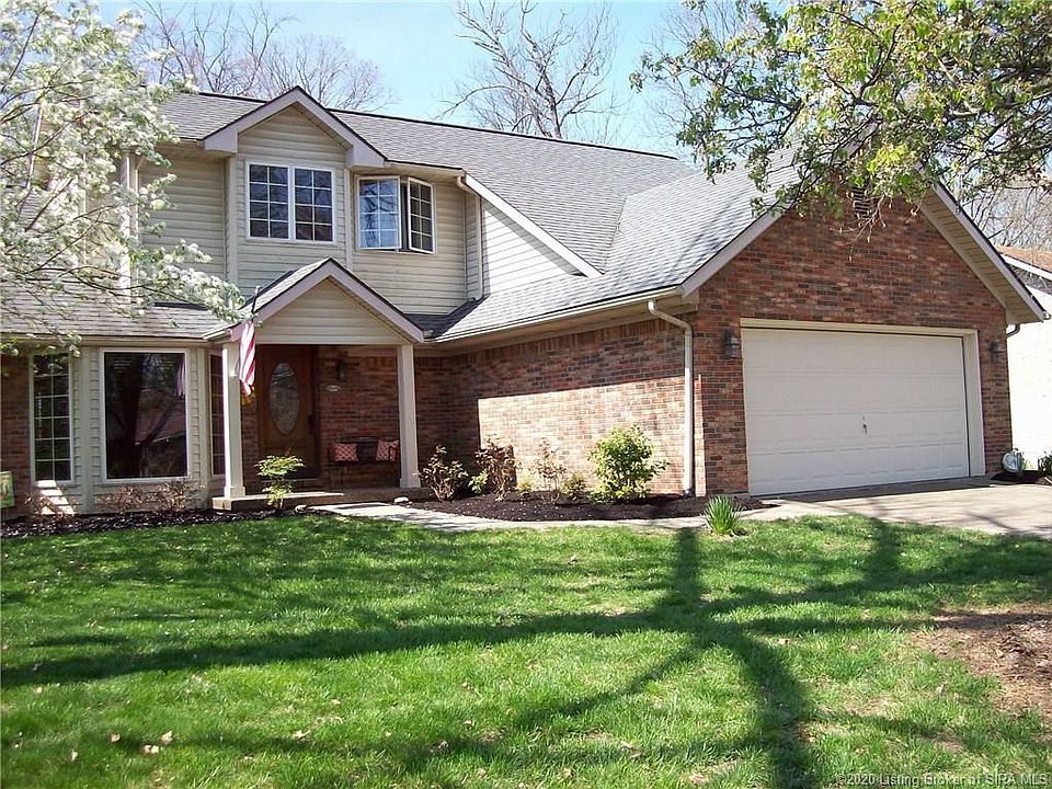 Charming 3 bedroom home tucked away in quiet corner of Sellersburg. Mature trees, fenced yard backing up to woods provides a quiet retreat. Great room with vaulted ceilings features hardwood floors, gas fireplace, opens to multi level deck and above ground pool! Master bedroom located on the first floor has adjoining bath with jetted tub, walk in shower and a spacious walk in closet. Two bedrooms up stairs share a second bath.