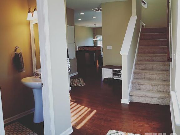 Stylish & energy efficient! Hardwoods on entire main level. Granite kitchen counter tops, raised panel cabinets, tile back splash, SS appliances. Gas Fireplace, Master suite has trey ceiling, large WIC and a garden tub w/ separate shower. Tank-less water heater, music port w/ ceiling speakers! Privacy fenced back yard. Minutes to the community center. Bike to the park and downtown Fuquay!