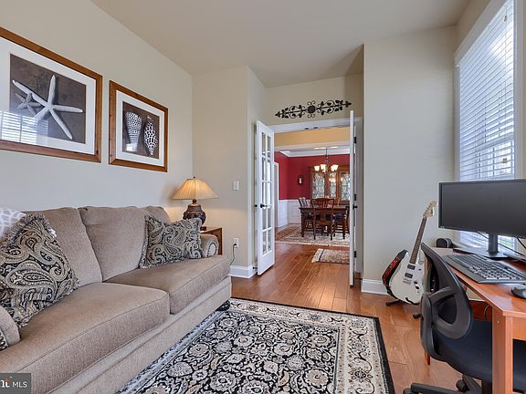 This gorgous Costello built home with almost 3,500 sq feet of total living space, offers 4 large bedrooms, 2 full baths and 2 half baths. Unpon entering, you will find wood flooring throughout the living spaces on the main level. A study /den to your left of the foyer with glass french doors, allowing for privacy. A dining room with beautiful moldings sits across the hallway. Open concept living room with gas fireplace opens into a granite kitchen with island. Between the kitchen and dining room is a granite bar/coffee nook area. Across the kitchen, you find a great mud room area with built in cubbies, a laundry room with folding area, then also access to the over sized 2 car garage. Heading downstairs you will find an amazing carpeted family room area, granite half bath, and a large wet bar area with hard wood floors, a wine cooler and island that seats 4. On the upper level, there is a large primary en suite with granite vanity with double sinks, tile bathroom, walk in closet. Three other bedrooms with carpet, 2 have walk in closets and all have ceiling fans. A full bath with tile floor and a double sink granite vanity is found just down the hall. You will find a beautiful patio off the kitchen, with views of the community pond with a fountain. Out front you will find a farm with horses...they even offer riding lessons.