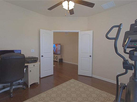4 Bedrooms, 3 FULL BATHS, 2 car garage PLUS Office. Stone exterior on 4 sides. Full sprinklers all yards. Wood flooring & tile down & carpet in bedrooms & upstairs. Fans in all Bedrooms and Living areas. 2" faux wood blinds thru out. Kitchen has 42" cabs, granite counters and center island, under cabinet lighting, ceramic tile back splash. Stainless steel appliances. Master large has walk in closet and longer walk in shower, 2 add'l beds and utility room down. One bedroom, full bath and living area UP.