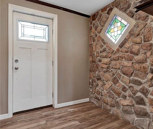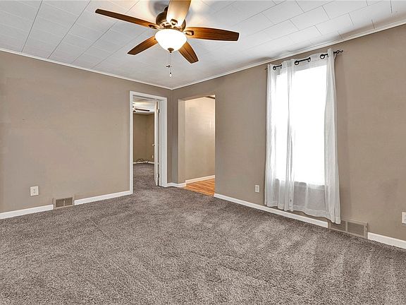 Adorable brick ranch with two spacious bedrooms and one full bath. Updated eat-in kitchen with electric stove, dishwasher, and refrigerator included. Floor to ceiling stone fireplace. Large, updated bathroom with jetted tub. There is an additional commode in the basement. Main level laundry room, the washer and dryer are included. There is room to relax on the covered front and rear porches. One car detached garage and off-street parking. Approximately 15 minutes from Zelienople, 30 minutes from Cranberry Township.