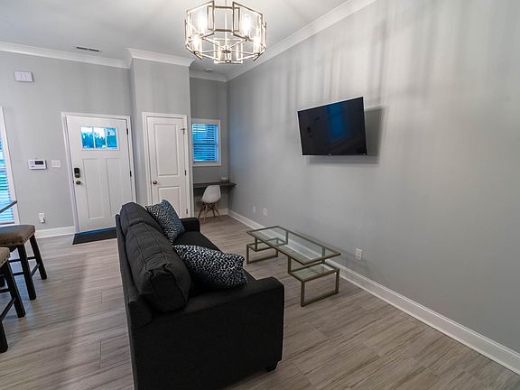 The Kennedy, provided by A&A Corporate Housing, offers one-level apartments. Each one bedroom/one bath, king bed, fully furnished rental has state-of-the art technology which includes keyless entry front door, smart thermostat, smart TVs, high-speed internet, a security-coded, walk-in bedroom closet, and security cameras. Modern furnishings, stainless appliances, granite countertops, 10 ft ceilings throughout, ceiling fans, washer and dryer, sound-proof walls and patio. The location of The Kennedy is convenient to I565, Hwy 231/431, Redstone Arsenal, and Research Park. Driving Distance: 1.9 miles from Redstone Arsenal 2.9 miles from Huntsville International Airport 3.9 miles from Toyota Field 7.1 miles from Bridge Street Town Center 8.5 miles from the Space and Rocket Center 9.1 miles from Mid-City District Landlord services, Lawn, Care/Maintenance, Electric, Water, Gas, Internet, Security System, Trash Disposal, Landscaping, Air Conditioning. All units are absolutely No-Smoking. Small pets allowed. Deposit and first month's rent due at signing.