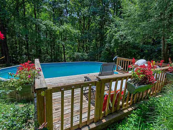 - EXTERIOR FEATURES: Wood Deck, Landscaped, Trees, Exterior Lights, Porch, Patio, Garden Space, AboveGround Swimming Pool