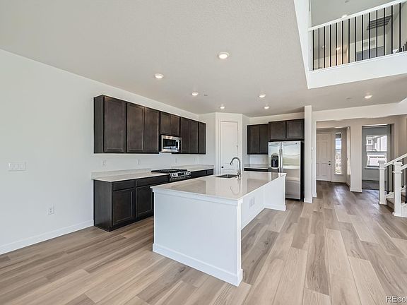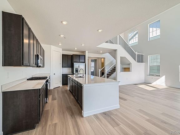 *** This home eligible for Special Financing, including rates as low as 3.99% FHA/VA or 4.50% conventional - Terms and conditions apply - Ask for details!***Move in Ready! Welcome home to the Stonehaven Floorplan in coveted Sunset Village! The main level has lots of natural light, a versatile bedroom that can be used as an office, full guest bathroom, EVP flooring, gorgeous kitchen with a large eat in kitchen island, quartz countertop and a 2-story great room. Open railing leading to the upstairs which has an owner's suite with spa style en-suite bathroom, conveniently located laundry room, 3 additional guest bedrooms, Jack n Jill full bathroom and a guest full bathroom located in bedroom #4. The basement is unfinished waiting for your personalization. Other features include a 3-car tandem garage, solar and an enlarged rear covered patio. See everything Erie has to offer with it's small town feel, majestic mountain views, 63,000sf community center and 20,000sf community Library! Close to shopping/dining, trails and parks!
