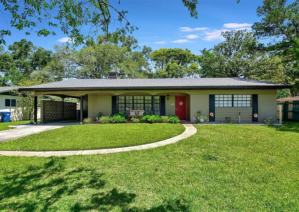 One of a kind North DeLand Mid Century ranch with charm and style. Extremely well cared for! This home offers 3BR/2BA…recent updates include BRAND NEW ROOF and many double pane pella windows!! Even has a detached below ground storm cellar…. Perfect for future wine cellar.... or extra storage. Large fenced yard with mature landscaping... provides the perfect amount of privacy! Enjoy nature watching from the front covered porch or back patio! Very open floorplan with large living room and wonderful family room that overlooks the beautiful back yard. No HOA!!