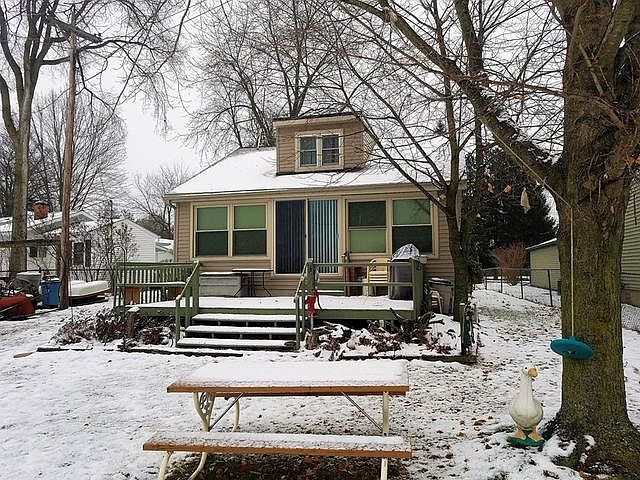 Looking for a cottage reminiscent of Grandma and Grandpa's place on the lake?? Loaded with knotty pine and quiet views of all-sports Wiggins Lake, this little cabin offers 3 bedrooms, a wall of windows in the living room with a doorwall to the lakeside deck, a huge 3rd bedroom that can double as a family room, combination kitchen and dining area with handmade knotty pine cabinets...all sitting on a deep level lot with a beautiful sandy beach for swimming and playing. Upgrades include a new 2.5 car garage, 5" well, roof, low E replacement windows, siding, blinds and water softener. Make your own family memories "at the cottage", all at a very affordable price. The bonfire and s'mores are waiting!