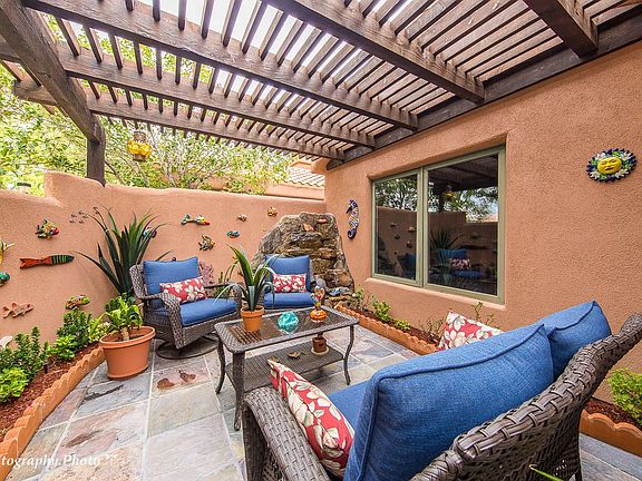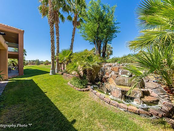 This professionally designed home is located in the Pinnacles, a gated community adjacent to the Arnold Palmer designed Oasis Golf Course. Ideally positioned in a cul-de-sac, this exceptional home is surrounded by lush, green landscaping, cascading waterfalls and pristine fairway. The view is gorgeous. The entry courtyard is gated and private with a tranquil water feature. A brand new pergola installed over the front courtyard creates an outdoor space that is filled with ambiance. The home is exquisite with soaring ceilings, large picture windows and an INCREDIBLE furniture package is included. From the unique Prazen metal art and lighting to the pricey furniture, paintings and accessories, you will not be disappointed. The floor plan is awesome. The bedrooms are spacious and bright and the den/office opens to the great room. The large island in the kitchen is perfect for gatherings and the granite tops & back splash are stunning. The wall texture, hardware, carpet and tile throughout the home are costly. The garage is extended and the custom cabinets are ideal for storage. This home is part of the Vistas and has use of the pool and recreation facility within walking distance.