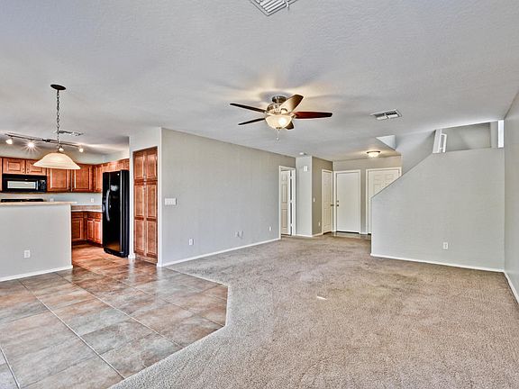 Very clean and ready to go...move in ready! This 4 bedroom, 2 bathroom home has new paint, ceiling fans and blinds. Master bedroom is downstairs, upgraded kitchen, and cabinets, Black Appliances, Including Refrigerator. Great location right across the street to a common area park with a children's playground and basket ball court. Come see! you will not be disappointed.