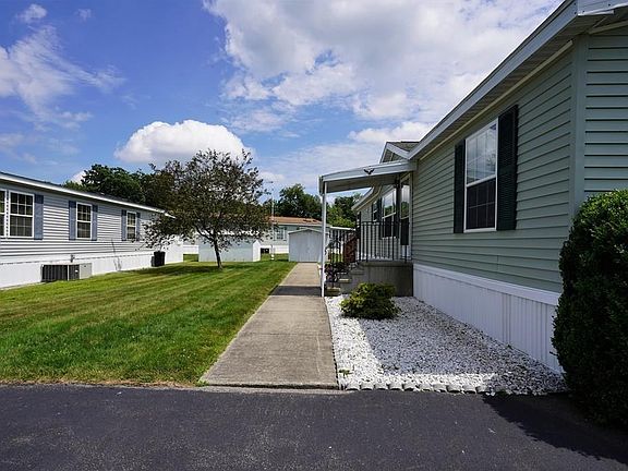 Rare offering in Riverview Estates. This 55+ community is well situated w/convenient access to shopping, major & minor routes & support services. Unit 28 has an expansive kitchen w/peninsula island and plenty of cabinetry off the kitchen enjoy the sliding glass door out to the large deck overlooking the well manicured lot.With an open floor plan & vaulted ceilings there's plenty of space for entertaining or sitting by the wood burning fireplace.The primary bedroom offers double door entry, pristine wall to wall carpet double closet with a full bath & separate walk in shower. Bedroom #2 also offers two closets! Can't forget about the generous sized laundry room with closet as well. You will never run out of closet space in this home! Out side you will find a shed with electricity. Roof was done approximately in 2011 with 40 year architectural shingles.