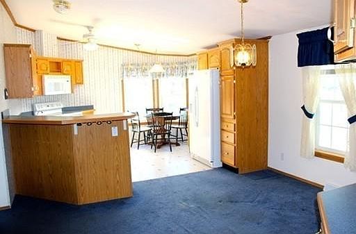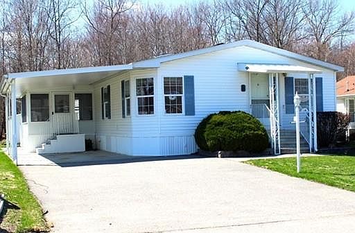 Be part of this wonderful 55+ adult community at Riverview Estates in North Attleboro. Double wide modular with over 1200 sq. ft. of living space has open floor plan w/ fully applianced eat in kitchen with wrap around windows & large quantity of cabinetry, storage & countertops. Spacious dining room has additional cabinetry, large living room and master bedroom with walk in closet and full master bath with double vanities, additional bedroom and full bath! 3 season sunroom not included in sq. ft., carport, large storage shed, gas heat, newer hot water heater, central air, pet friendly and perfect location near shopping and highway. This modular is one of the last to be built in park! Quick closing possible.