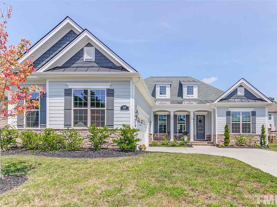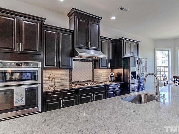 Gorgeous & spacious ranch, tons of upgrades, mins to I-40, Southpoint mall & Tobacco Trail! Expansive, open fl plan, hardwoods, crown molding, gas-log FP, plus endless sunlight & bay windows thru-out! Chef's kitchen has granite AND quartz, SS, gas cooktop, beveled subway tile & 12ft island! Master suite w/tray ceiling, sitting area, tiled bath, dual vanity, deep soaking tub, tiled frameless shower & XLg custom closet w/built-ins! Office w/french doors. Covered rear deck & fenced backyard! Tons of storage.
