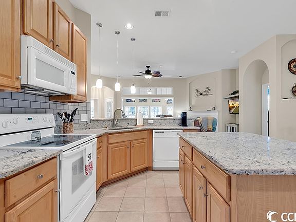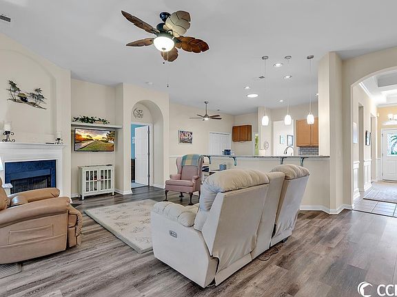 One of the largest homes in one of the most coveted golf communities in Myrtle Beach. Enjoy this fabulous 4 bedroom open floorplan with updates and upgrades throughout. Updates include a new roof 2019, HVAC 2022, Hot Water Heater 2022, new carved patio overlooking the 8ith tee. The beautiful 1 story home offers 10' ceilings, dining room; living room, large foyer; kitchen with bar, work island, breakfast nook, & family room with fireplace, 25x10 Carolina Room. The master bedroom features 2 walk-in closets; separate vanities; shower; and garden tub. Tray Ceiling Foyer & Master Suite. 2 Car Garage with Screen. The spacious kitchen & pantry allows for endless entertaining and cooking. Sprinkler system & security system. Gorgeous view of the lake and golf course from the family room; bedrooms; and Carolina Room.The Arrowhead community features clubhouse, pool; tennis, and play area.