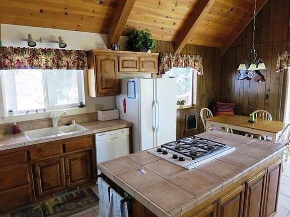 Solid lake views from this impeccably clean cabin on a quiet cul-de-sac! The interior features include: vaulted pine ceilings, updated kitchen with tiled counters/floors, newer appliances, huge lower level master bedroom with cozy pellet stove, and two additional spacious bedrooms for sleeping a crew! Outside, you'll find an extremely well maintained wrap around deck plus lower level decking off of the master bedroom. The detached two-car garage can hold some toys, plus there are additional parking pads at the street for the boat or over flow parking. The landscaping is low maintenance yet lush, and the deck provides a shady place to relax and gaze at Lake Almanor! This home is turn key, comes almost entirely furnished, and is in a fabulous location!!!