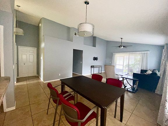 Unfurnished three bed two bath single family home with two car garage. Property includes in-unit laundry, fenced-in spacious backyard, and screened in patio with double entrances. Primary bedroom ensuite includes walk-in closet, vaulted ceilings, and separate patio entrance. Stainless steal kitchen appliances and tile floors throughout. Ceiling fans in living room, all three bedrooms, and on the patio. Front door smart lock, ring doorbell, landscaping and pest control included. Close to transit, dining, parks, and shopping such as Winn-Dixie, Miller's Ale House, Cold Stone, Publix, Walmart, Planet Fitness, and more. I'm easygoing, kind, and I genuinely care about creating a peaceful living environment. I don't live on the property, but I'm just a message away if anything's ever needed. The neighborhood is chill, clean, and quite perfect for someone who wants an stress-free place to call home. If that sounds like your kind of space, please apply and schedule a tour. I'd love to hear from you! Lease term 12 months or more. Renter is responsible for utilities and WiFi. Renters may have up to 4 vehicles (2 in garage and 2 in driveway). Up to 2 pets allowed under 40 lbs each. No smoking allowed in unit. Please keep property in good condition inside and out.
