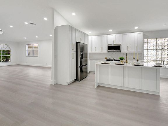 This beautifully remodeled home in the desirable Lacuna Golf & Country Club offers a perfect balance of privacy and elegance. The open floor plan includes a spacious living room, dining area, and a large screened-in patio, making it ideal for both relaxation and entertaining.The brand-new kitchen features classic white cabinets, stainless steel appliances, a tiled backsplash, and a snack bar. The primary suite includes a slider to the patio and a walk-in closet, while the master bath offers dual sinks and a walk-in shower for a luxurious experience. Outside, enjoy a private, oversized yard with a large screened-in patio. The home also boasts a new roof, high hat lighting, and plenty of natural light. Community Amenities: Resort-style pool, Clubhouse with restaurant, Fitness center, Manned, gated entry with roving security.