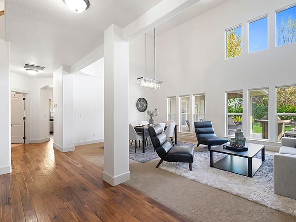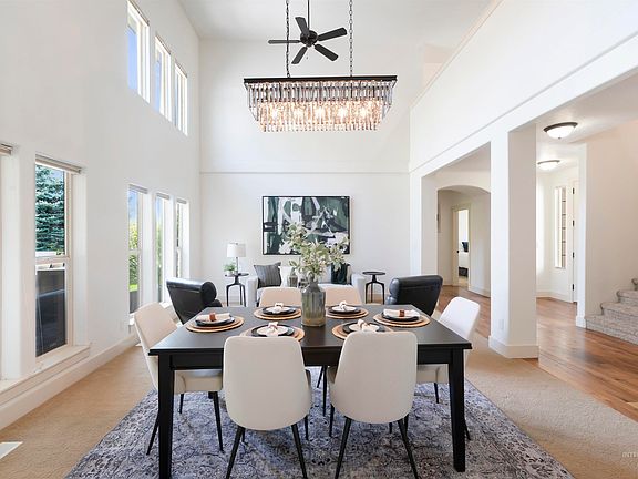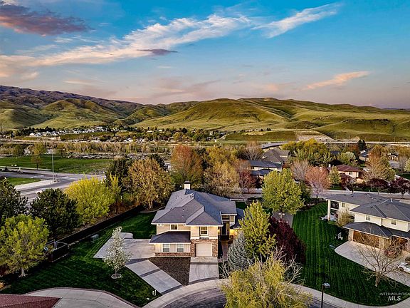 Discover unparalleled luxury and privacy in SE Boise's coveted Canyon Point. This magnificent home, nestled on nearly half an acre, blends the elegance of high ceilings and warm hardwoods with the comfort of a family-friendly design. Enjoy breathtaking Canyon views from a master suite sanctuary, complete with a cozy fireplace. Perfect for entertaining, the home features a gourmet kitchen that opens to a covered patio amidst mature landscaping for ultimate privacy. Benefit from exclusive Surprise Valley amenities—pools, tennis, clubhouse, and more—all while being a stone's throw from outdoor adventures at Lucky Peak and the river. This meticulously maintained property includes a vast garage with shop space, flexible living with a main level bedroom suite, and potential for a second master suite upstairs. Experience Boise living at its finest in this custom community home, where luxury meets lifestyle.