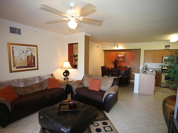 Well Laid out 3 bedroom two bath unit in a community with lots to offer. In the unit there are Granite counters, stainless appliances. A laundry room in the unit featuring full size washer and dryer. The master bath features double sinks. There is a private balcony off the living room. The HVAC was replaced in January of this year. The community features resort style living with two pools/ hot tub spas, tennis, state of the art fitness centers, billiards, media room and a business center. There is controlled access to the community and there is security in the evening.