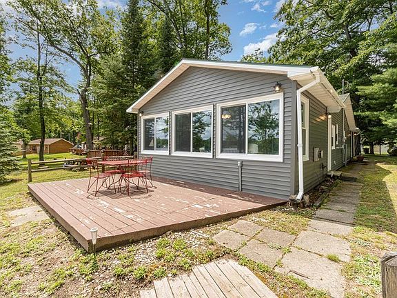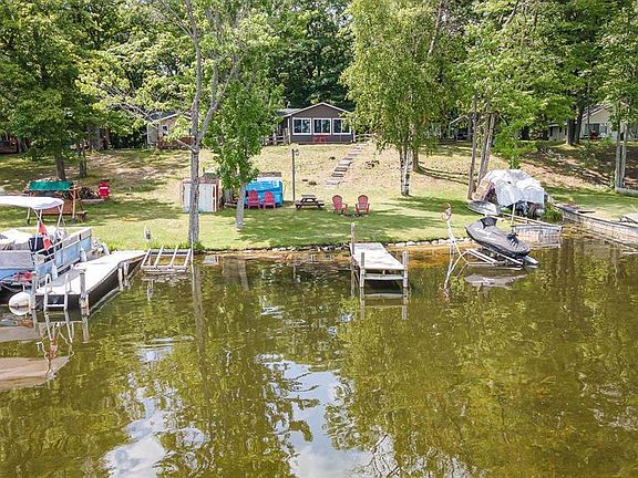 All sports Indian Lake is calling your name....are you ready? Enjoy fishing off your dock, taking a jet ski ride or enjoying a family pontoon ride. As a smaller lake (40-50 acres) it stays peaceful and serene and the views are beautiful! The home or cottage has newer vinyl siding and vinyl windows. Step inside to the great room which offers a family room area and kitchen and dining space. There are 2 bedrooms both with newer carpeting, 1 with a large walk in closet. The living room offers a wall of windows that overlooks the yard and the lake. There is a laundry area between the kitchen and living room too. Full bath with tub & shower. Partial basement houses all the mechanicals. Large deck out front for relaxing mornings, newer well pump and the land across the road is where you'll find the pole barn with concrete floor & electric. So much to do here with a short drive to West Branch, state land nearby for hunting or trail riding and you can walk to Elk Lake Bar for great food & music! House is being sold mostly furnished including the paddle boat.