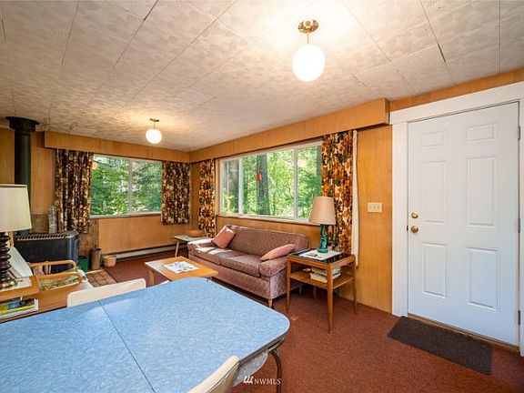 Cozy vintage fixer home located in the heart of the East County. Could be a possible full time residence, get away vacation home or possible future rental. Dwelling is tucked away in a nicely wooded lot for privacy. Located about 30 miles from Mt. Baker Ski, just down the road from silver lake park, and 15 minutes from the Canadian boarder crossing. Great location for the person who enjoys outdoor activities and adventures. A ton of potential for this property. New metal roof in 2006, laminate flooring installed in hallway and two bedrooms in 2009. 8 windows and front door also newer. Property sold 'As is - where is'. Furniture and tools in shed included in sale.