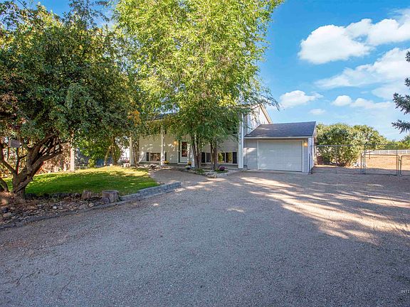 Acreage for Horses or Small Farm Animals! Incredible Home on almost one Acre to park your Toys or build a Shop. Quiet street with Mature Trees by Boise Ranch Golf Course. Upgrades in kitchen, baths and entry. Amazing view from back deck overlooking Fire Pit, Pasture and Garden area. New Roof, A/C HVAC and water heater. Nice family Room upstairs and Large Living Room, Bonus Room or Man Cave downstairs. Natural light shines on Laminate Hardwood Flooring upstairs and the downstairs is ready for New Owners choice of Flooring. Just 20 min to Downtown, short walk to the Golf Course, 3 miles from Brand New Discovery Park which has a Dog Park and Fountains, plus Gem Prep Academy. Comes with One year Home Warranty and Best part no HOA or CCR's