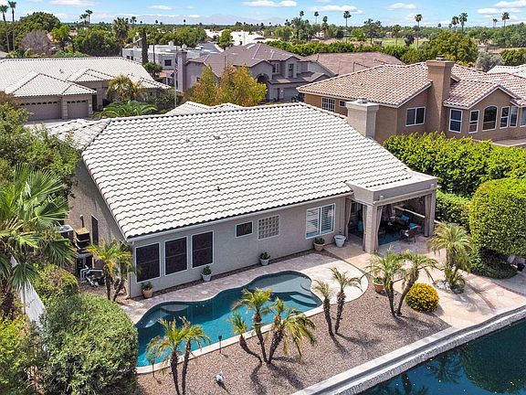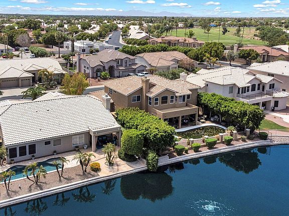 This beautiful SINGLE LEVEL home on the lake with mountain views, heated pool and patio misting system is a must see!!