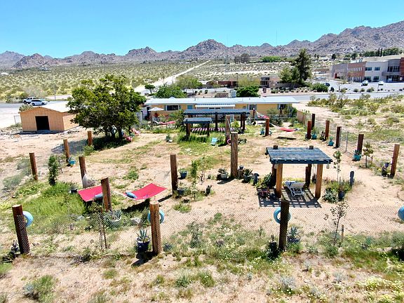 Mid Century home zoned General Commercial in Joshua Tree with major Highway frontage. Currently a Single Family Residence, County says can be used as a home or applied for a commercial use. Was previously utilized as a day care. Remodeled with a beautiful fireplace, and warm great outdoor spaces with large exercise areas and plenty of potential for parking. Close easy drive to JT Village, Indian Cove, and the National Park. Use as a home with the potential to create a successful Art gallery, Yoga or Spa, allowed uses too long to list, buyer to contact County directly to verify allowed uses: cafe / restaurant, convenient store / market, physical therapy office, architect or contractor, garden or nursery, museum, entertainment, offices, and more. Across the street are the local County offices, court house, CHP, and hospital. Furniture may be available too. Ideally priced for the smart investor. This property has real potential to serve the local community. Don't wait on this one call now!!