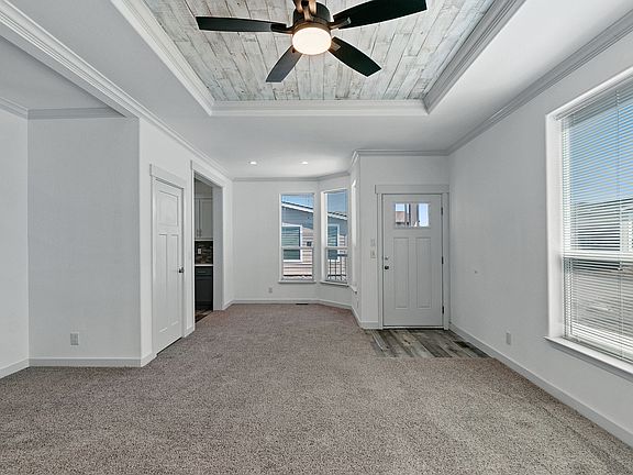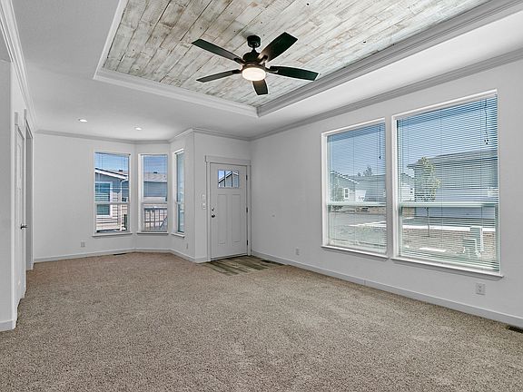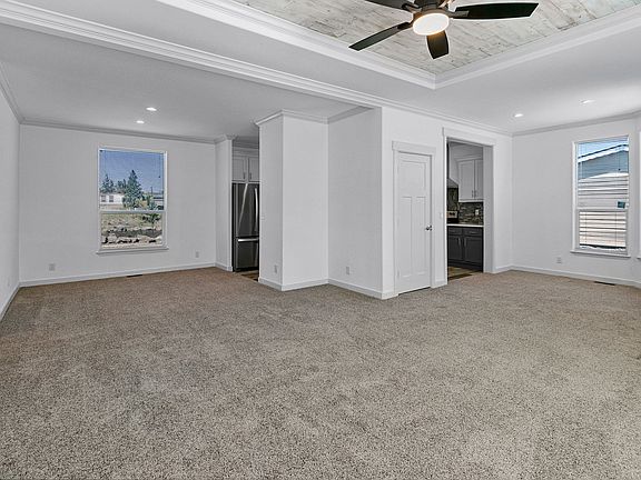 Welcome to this stunning new home on Lot 25, featuring 9' flat ceilings throughout and a den with a private entrance. Enjoy the comfort of central air conditioning and the convenience of stainless steel appliances, including a deep kitchen sink with pull-down faucet, all complemented by urban gray shaker cabinets, soft-close drawer guides and hinges, and quartz countertops throughout. The ceramic tile backsplash adds a touch of elegance to the design. Relax in the primary bath's 60? tile shower and enjoy the 12? tray ceiling with wood paneling in the living room and 10? tray ceiling in the primary bedroom. The all-electric home is Energy Star rated and has a smart digital thermostat. The Aspen Butte model home is home is built by Skyline and features 2 bedrooms, 2 bathrooms, and 1,354 square feet of living space. The 40oz Freshen-Up carpet upgrade with 7lb pad provides a plush feel underfoot, and the attached single-car garage offers convenience. As an exclusive offer, receive a $25,000 credit at closing and a $5,000 landscaping allowance after closing, adding exceptional value to this remarkable living experience.