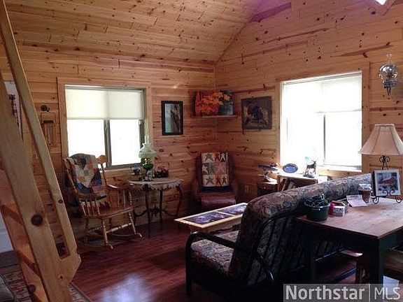 20 wooded acres just East of Askov has this adorable year-round cabin! Cozy 1 bed built on a slab with in-floor heat and sleeping loft. Main floor has bedroom, full bath, and open liv/eating area. Like New! Fin. in knotty pine. Enjoy all four seasons!