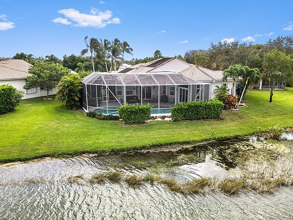Experience unparalleled luxury in this exquisite 4-bedroom, 3-bath waterfront home, perfectly designed for both relaxation and entertaining. Nestled in a picturesque setting, this home features a spacious 25'x25' screened patio with desirable north-east exposure, providing a tranquil space for morning coffee or evening gatherings against a backdrop of sweeping lake views. The custom-upgraded kitchen is a chef's dream, complete with sleek built-ins, a central prep island, and high-end finishes that add elegance and functionality. The master suite, overlooking the pool & lake, is a serene retreat, with spa-like touches including dual ''his and her'' vanities, large walk in closets, and ample space to unwind. Inside, the home exudes sophistication with newly installed flooring throughout the main living areas, complementing the home's open, light-filled layout. A dedicated laundry room with a laundry tub adds convenience, while the flowing floor plan ensures seamless movement between rooms. Step outside to the covered patio and enjoy the screened-in pool area an ideal oasis to bask in the Florida sun or enjoy a refreshing dip with stunning lake views as your backdrop. Recent upgrades, including a new hot tub, washer and dryer, and a refreshed kitchen, ensure this home is move-in ready with contemporary appeal.