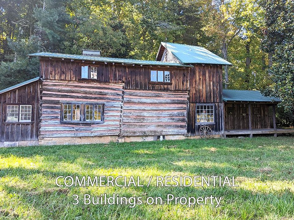 Prime Commercial and/or Residential Buildings on busy US HWY441 South of Franklin with approx. 285 feet of road frontage. The main Log building is approx.1,662 sq.ft built with Antique Logs and Board and Batten siding. The Interior is under renovation and needs to be finished. Rock fireplace and wood floors. There is a 6ft chain-length fence around the main building, new 200 AMP breaker box, new windows for bedrooms and kitchen are inside the house ready to be installed. This 2 bedroom 1 bath dwelling would make a great retail business location or personal residence and use the small authentic log cabin for a business or an additional business. The smaller building has 2 rooms and a half bath. unfinished 2 Bedroom 1 Bath dwelling. 2003 Metal building with full bath, 2000 sq. ft, and septic installed in 2005 currently rented. A commercial billboard is located on the property. Two drilled wells, septic and natural gas. Includes PIN# 6581858422.