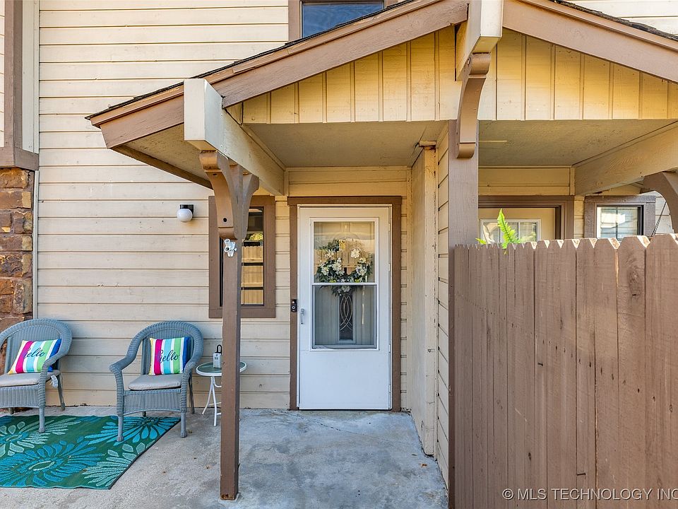 Updated and Move-In Ready Condo in Desirable Shadow Mountain! This beautifully refreshed two-story residence features new flooring, carpet, and paint throughout. The spacious Living Room centers around a decorative fireplace and opens to a cozy Dining Area and bright Kitchen with granite countertops, stainless steel appliances, bar-top seating, and direct access to the private Patio. A chic Half Bath and convenient Utility Area complete the main level. Upstairs, both Bedrooms include private Full Bathrooms, while the Primary Suite offers a versatile nook with a secondary closet—perfect for an Office, nursery, or creative space. Outdoor living shines with a private, partially covered Patio plus covered parking conveniently located right out front. Enjoy the community’s many amenities including two pools (one adult-only), a rentable clubhouse, and gated entry with courtesy patrol. HOA dues include exterior maintenance, lawn care, cable, water/sewer/trash, and termite prevention for a truly low-maintenance lifestyle. All just minutes from St. Francis Medical Park, Woodland Hills Mall, and Tulsa’s best shopping, dining, and entertainment.