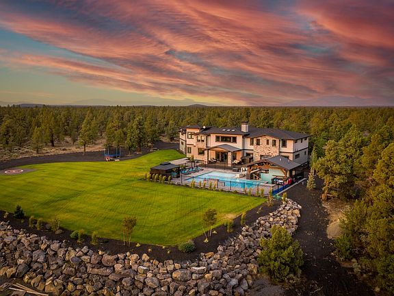 Presenting an extraordinary opportunity to own a sanctuary of sophistication and privacy without sacrificing luxury and convenience. Impeccably situated amidst the awe-inspiring beauty of the Cascade Mountains, this property delivers a lifestyle like none other. Upon entering through the regal, wrought-iron gates, you will wind through a serene landscape before coming to gaze upon the home's commanding façade. The interior is a testament to meticulous craftsmanship, adorned with hardwood floors, coffered ceilings, and artisanal fixtures. Step outside, and find yourself in an outdoor oasis with a resort-style swimming pool; complete with a built-in bar, sun shelf, swim-up bar area, surround sound system, and bathroom. For the equestrian or outdoor enthusiast, trails for horseback riding, hiking, and mountain biking are but a stone's throw away. Your search for the epitome of Central Oregon grandeur ends here.