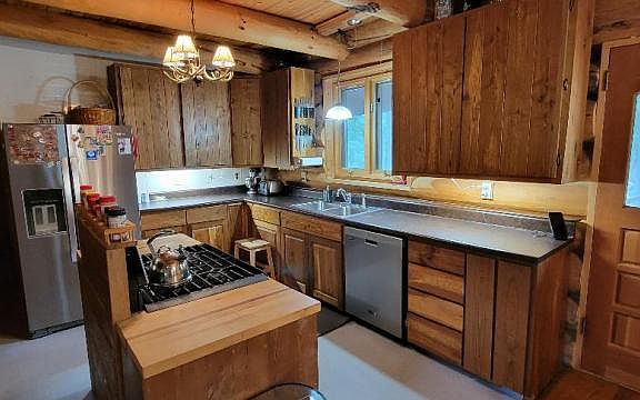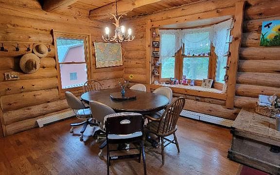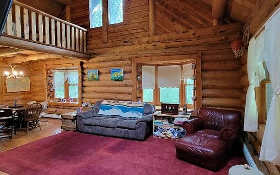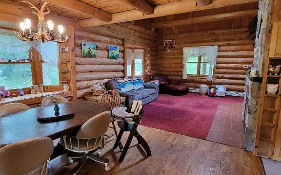 Custom constructed log home located on 6 wooded acres with mature oak tress and plenty of wild life! This 3 bedroom 3 bath paradise offers a full walkout basement that is partially finished and perfect for a growing family. Vaulted ceilings throughout the large living room that opens up into a upstairs loft, 2 bedrooms and a 3/4 bath. Master bedroom is located on the first floor and basement offers the possibility of two more bedrooms. Cultured stove wood burning fireplace will keep you cozy in the evenings. Large 24'x60' storage shed with wood working shop and storage loft giving you endless storage and maybe a new hobby! Public beach access is located at the end of Champagne Road and mature hardwood lot allows you to have your own hunting grounds!. Actual address of the home is Kinde.