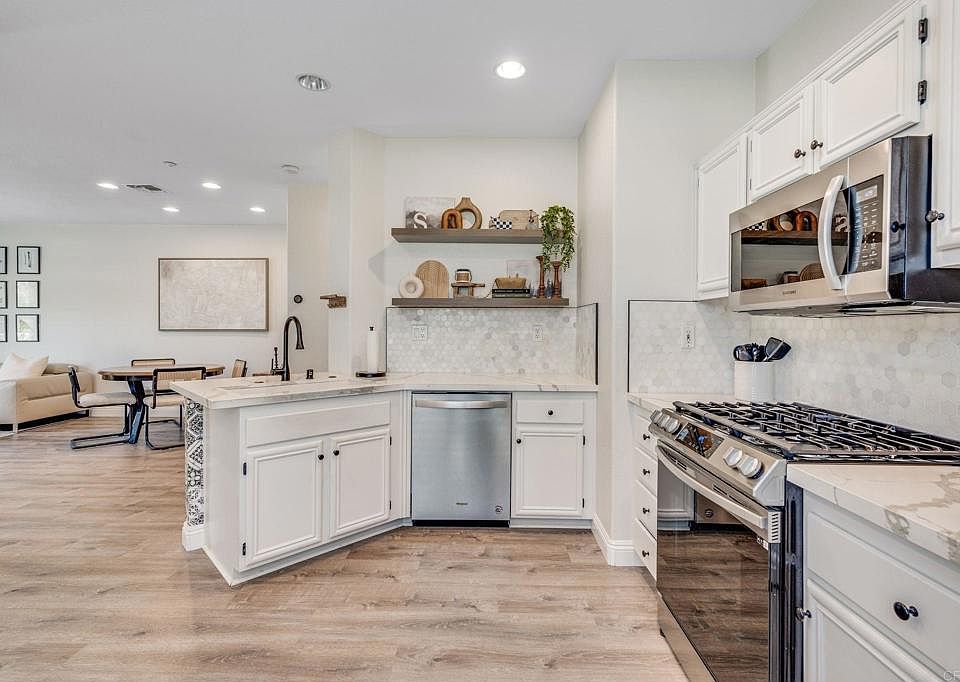 Welcome to 6372 Citracado Circle, a beautifully remodeled 3-bedroom, 2.5-bathroom condo nestled in the desirable community of Valencia at Rancho Carrillo. This two-story end unit gem was updated in 2022 and offers a perfect blend of modern luxury and comfortable living. Step inside to discover Sterling Oak luxury vinyl flooring that flows seamlessly throughout. The gourmet kitchen is a chef's delight, featuring quartz countertops and state-of-the-art Samsung smart home appliances. Marble Vanities give the bathrooms an elegant feel. An inviting custom fireplace enhances the living area, perfect for cozy evenings. The primary bedroom is a true retreat, boasting a spacious walk-in closet, dual vanities, and a stylish standing shower. New Water heater and Water Softener system installed 2022. Large 2 car Garage attached with plenty of storage and ample parking. Ring Doorbell Cameras. Nest controls the AC/Heat. This Turn Key Condo has it ALL and is the one you have been waiting for! Enjoy the serene neighborhood views and all the amenities that Valencia at Rancho Carrillo has to offer. Don't miss this opportunity to own a slice of paradise in Carlsbad!