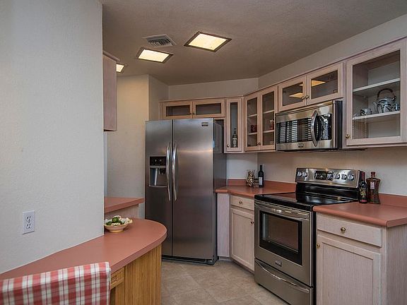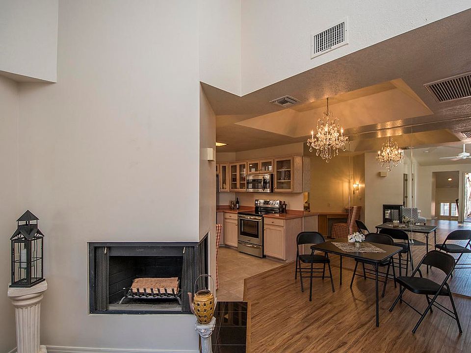 Contemporary Condo in Gated Luxury community, LaPaloma! Mountain & Sunset Views, Ready for quick move-in! Laminate wood floors, New Stainless appliances, Beautiful Chandelier's & Lovely Sunset views from the Patio. Stairs to 1 car garage with epoxy covering & storage closet. Master BR has a walk in closet, luxury sink vanity & shower.Wake up to a peak at the sunrise over the golf course. 2nd BR has a bath with whirlpool jets and shower. Lots of cabinets in the kitchen. Very stunning design with vaulted ceilings.Laundry room w/washer & dryer. Great place, you will love it. Hurry, won't last long!
