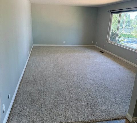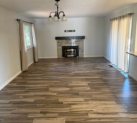 Peaceful location with lovely sunset views. Large fenced backyard. There are 2 bedrooms and 2 bathrooms, a large living room with picture window and a family room with gas insert. The laundry is off of the kitchen and convenient with a lot of storage space in both the kitchen and laundry. There is a 2 car garage with plenty of storage cabinets also. There is room to park an RV outside on the gravel next to the garage. The house is comfortable with both heating and air and well insulated. Please do not disturb the current tenants. Renter is responsible for Water, Garbage, Internet. There is a mandatory one year lease. Only those with good credit, personal and work references will be considered. There is a no smoking policy for the home. Tenant will be responsible for the maintainence of yard care which is minimal.