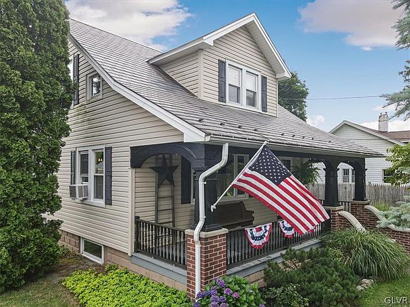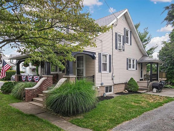MULTIPLE OFFERS RECEIVED- HIGHEST AND BEST BY 8 PM ON MONDAY 7/22/2024. Welcome to 6372 Sullivan Trail, Wind Gap, PA! This charming 1921 Colonial Farmhouse blends vintage charm with modern convenience. Located on a spacious 0.24-acre lot, this 3-bedroom, 2 full bathroom home offers 1,901 total finished square feet, including a fully finished basement. The main floor boasts a cozy living room, formal dining room, and a delightful eat-in kitchen with modern appliances. Enjoy hardwood, laminate, resilient tile, and wall-to-wall carpet flooring throughout. The property features a detached garage, driveway, off-street parking, a covered porch, deck, fenced yard, hot tub, fire pit, utility shed, and workshop. The roof combines asphalt fiberglass and slate, with a shingle overhang covering the kitchen area. Located in the Pen Argyl School District, with access to schools, major roads, shopping, dining, and recreational activities, this home offers breathtaking panoramic and valley views. Easy access to State Route 33 which leads to SR 22, I78, and I80 for commuters. Utilities include public water and gas hot water. Your dream home is just a call away!