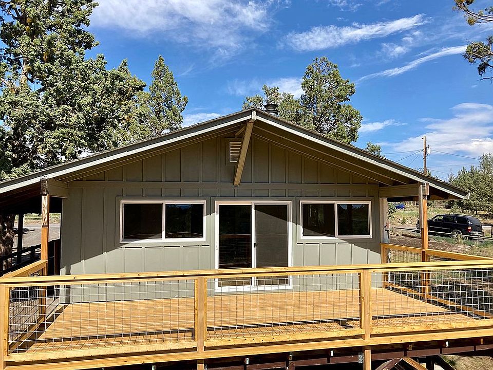 Cute single-level situated just down a country lane close to town, shopping, convenient to Sisters-Tumalo. Open living area w/ island kitchen, sliding glass door onto raised deck. 3 bedrooms, 1 bath, detached garage w/ attached garden shed, accessed from circular gravel drive. Nice rock out-cropping gives privacy from street.