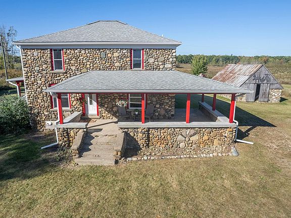 Experience the best of country living in desirable Shepherd School District with modern comforts in this beautifully restored historic home, nestled on 40 picturesque acres. This property offers the perfect blend of serene countryside living, excellent hunting opportunities, and flexible farming potential. Gutted and completely renovated in 2011, the home boasts updated walls, floors, and ceilings, ensuring a fresh and modern feel throughout. Enjoy the comfort of hot water heat running under the floors both upstairs and down, providing efficient and cozy warmth. The spacious living areas include three bedrooms, two full baths, and a large master suite with two walk-in closets. Original pocket doors and much of the trim add a touch of historic charm. All new plumbing, electrical systems, and a hot water heater were installed in 2021. The basement has been structurally reinforced, and the attic is well-insulated with fiberglass and blown-in insulation. Outdoor amenities feature two serene ponds stocked with fish, a floating deck added in 2023, and multiple porches, including a wrap-around covered porch, offering plenty of outdoor relaxation spaces. Functional outbuildings include a 12x24 shed with a loft, electrical, and insulation; a sturdy barn with a metal roof; and a historic stone "Smithy" building equipped with original blacksmith tools and machinery. This home holds historic significance as one of the first houses in Isabella County to receive electrical service and also with a large arrowhead collection found on the land and donated to the local tribe. With 18 tillable acres and a windmill agreement in place, this property is ready for your agricultural pursuits. This lovingly restored home is move-in ready and offers a unique opportunity to enjoy the tranquility of country living with all the modern conveniences you need. Make this unique property your own hobby farm, full-fledged farm, or countryside oasis today!